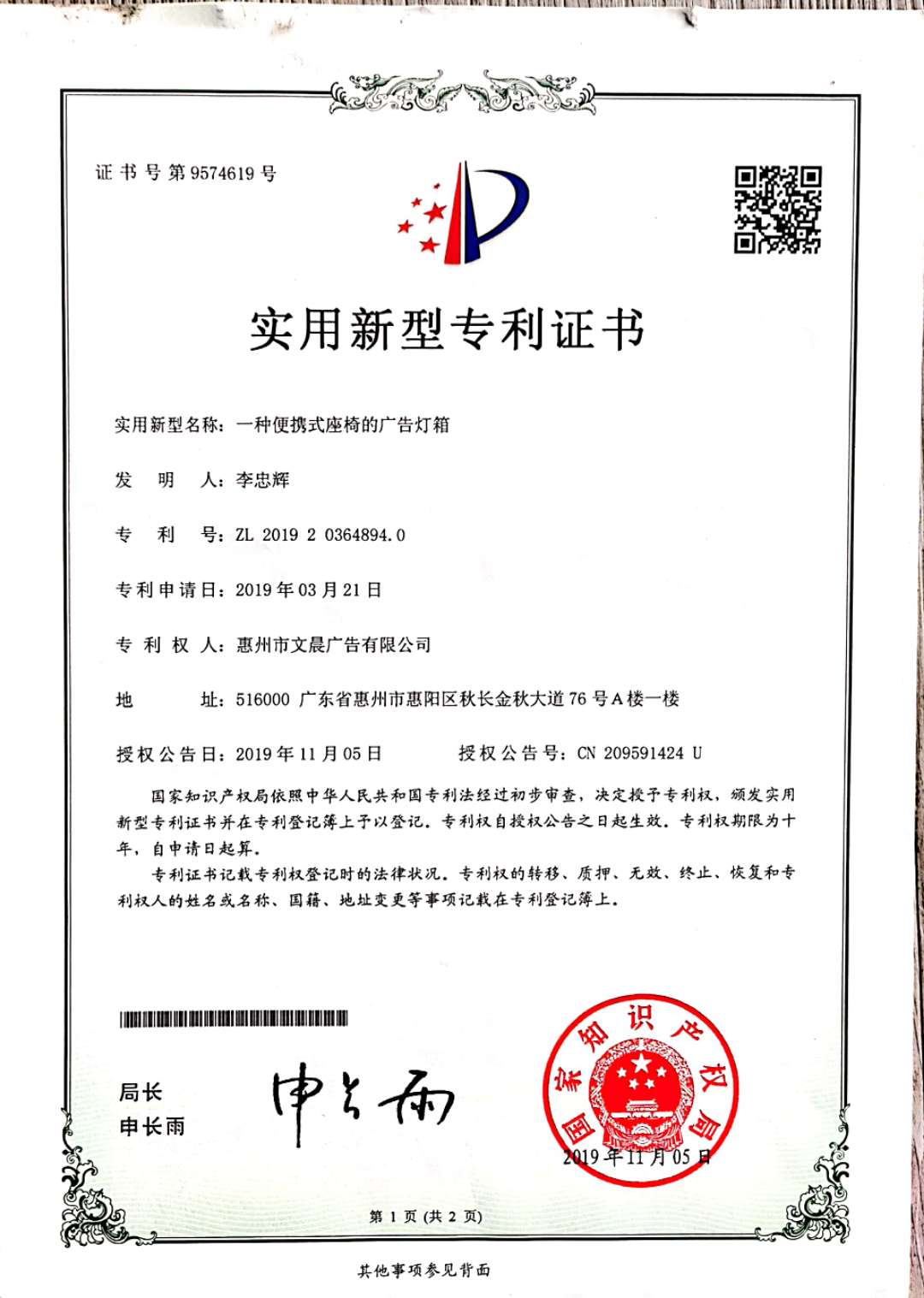 專利證書?PATENT CERTIFICATE
